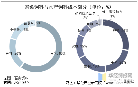畜禽飼料與水產飼料成本劃分(單位:%)