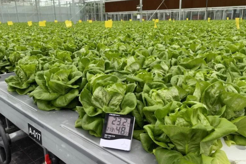 走進京東方廊下鎮特色蔬菜智聯工廠,一排排綠油油的奶油生菜“排排坐”,散發出蔬菜自身所帶的清香“體味”。這個味道可不是后期加工形成的,是因為這個工廠里沒有土壤和飛蟲,因此也聞不到各種肥料的刺鼻味道。敞亮、高聳的大棚里,盡收眼底的都是綠色蔬菜,感受到的都是高科技的種植技術和隨采隨吃的新鮮食用體驗感。