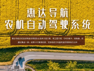 惠達(dá)導(dǎo)航農(nóng)機(jī)自動(dòng)駕駛采用國際主流單天線方案,將衛(wèi)星天線、GNSS板卡、控制器、陀螺儀集成一體;采用10寸高清彩屏,支持電機(jī)方向盤和液壓兩種執(zhí)行元件。黑龍江惠達(dá)科技有限公司專注智慧農(nóng)業(yè)領(lǐng)域多年,其新推出的單天線農(nóng)機(jī)自動(dòng)駕駛滿足高速、低速和坡地作業(yè)精度。