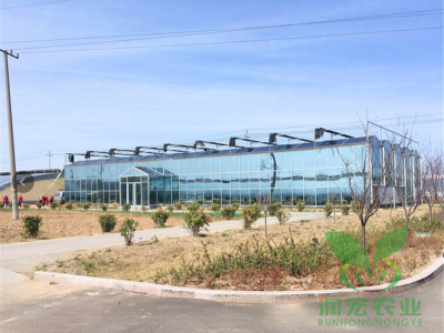 玻璃連棟智能溫室采用熱浸鍍鋅鋼結構骨架,覆蓋材料一般采用4-5mm優質浮法玻璃或鋼化玻璃,透光率大于95%,溫室頂部及四周為玻璃
