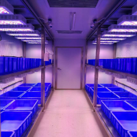 移動箱體型智能植物工廠利用20尺、40尺型便于流動運輸保溫殼體或者是火車車廂,結構分設備區和種植區,最大程度優化空間和種植面積。